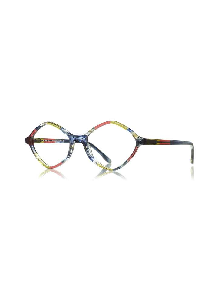 Il nome della collezione è rappresentativo del concetto di incollaggio, specialità messa a punto da TRISOTTICA in molti anni di esperienza. Apparentemente è una semplice sequenza di colori, di fatto comporta una preparazione per nulla scontata o casuale delle tavolette di acetato da cui si ricavano il frontale e le aste. I tre colori degli inserti, infatti, vengono predisposti con' un'alternanza di tonalità studiata per suggerire l'effetto del mosaico. La caratteristica predominante è il colore che diventa esclusivo in ogni sua versione. È un applicazione originale che dà vita a modelli sottili con poca consistenza di volumi dove dove sarebbe impossibile ottenere efficaci attraverso incollaggi complessi. Per la semplicità della geometria si è ritenuto che questa interpretazione di incollaggio fosse adatta anche ai modelli maschili, rappresentati in alcune versioni della collezione.